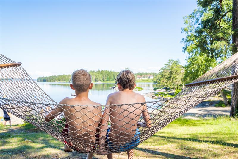 Just north of Ørje locks, not far from Båtcafeen you will find a small cove with a sandy beach.