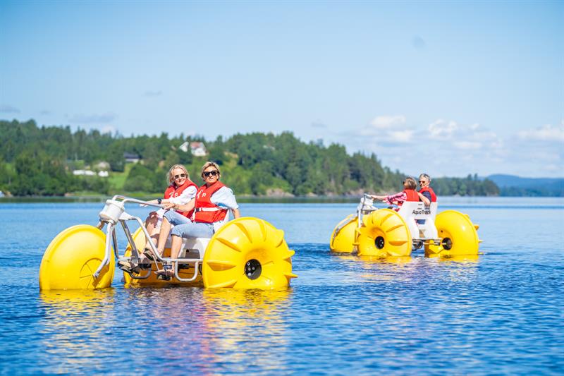 The yellow bikes are an eye-catcher in the Halden Canal, and have become a very popular activity by the Boat Café in Ørje. Mom and dad can have a coffee cup while the kids have fun on the canal. Or you as an adult can join - it's good excercise.